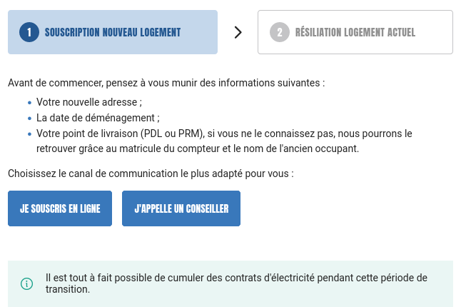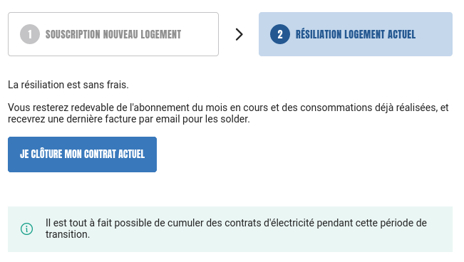 NOUVEAU : Résiliation de votre contrat 100% en ligne ! Depuis l'onglet « Déménagement » de votre espace-client. Uniquement compteur Linky communicant, puissance ≤ 36 kVA et sous réserve de la télé-opérabilité des services pour les contrats compatibles.